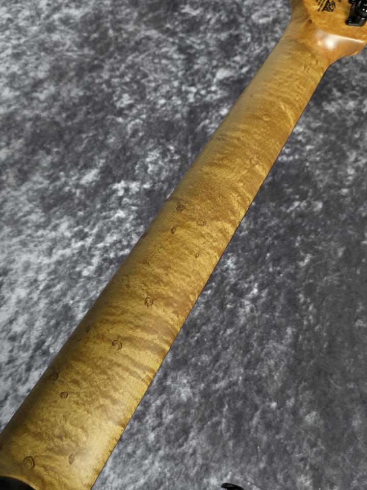 ネックは熱処理を加えることにより耐久性を音質向上を狙ったフィギュアドローステッドメイプルネック材を使用。