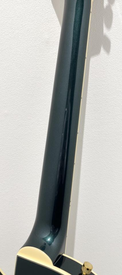 最大の特徴は、高級感あふれる「キャデラック・グリーン」とゴールドパーツの組み合わせ。往年の上位機種を彷彿とさせる気品漂うルックスは、ステージ映え間違いなしの圧倒的な存在感を放ちます。