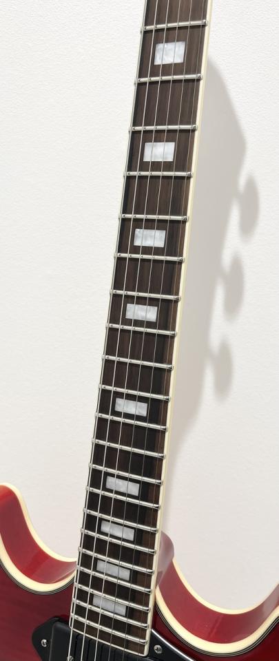 ボディセンターブロックにはソリッドメイプルを採用し、ハウリングを抑えつつ豊かなサスティーンを確保。ジャズ、ブルースからロックまで、プレイヤーのニュアンスを余すことなくアウトプットする、驚異的なコストパフォーマンスを誇る1本です。