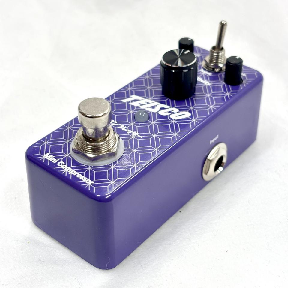 Teisco Mini Compressor(テスコ・ミニ・コンプレッサー)は、ギター本来の自然なトーンを損なうことなく、ダイナミクスを均一に整え、豊かなサステインを加えるために設計されました。