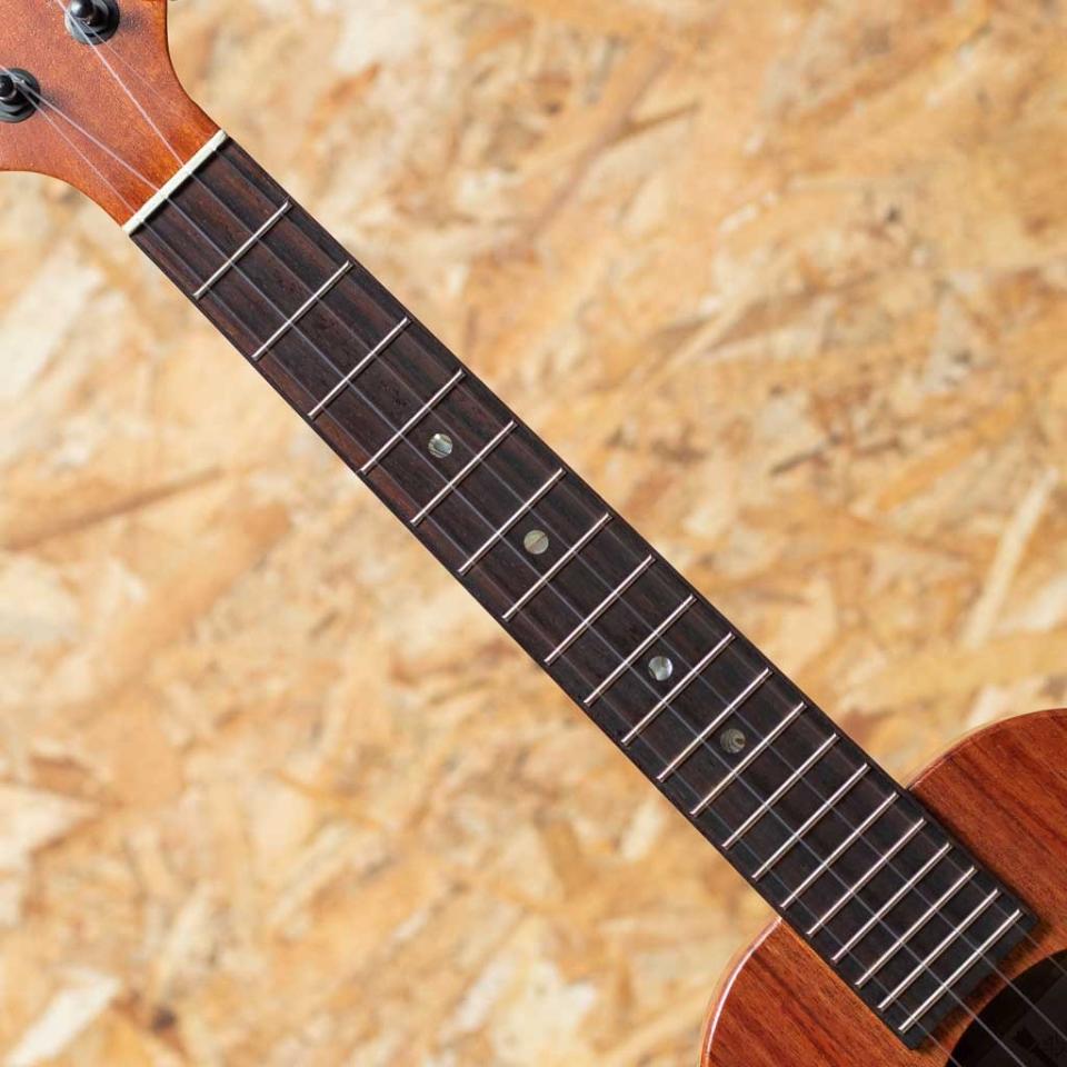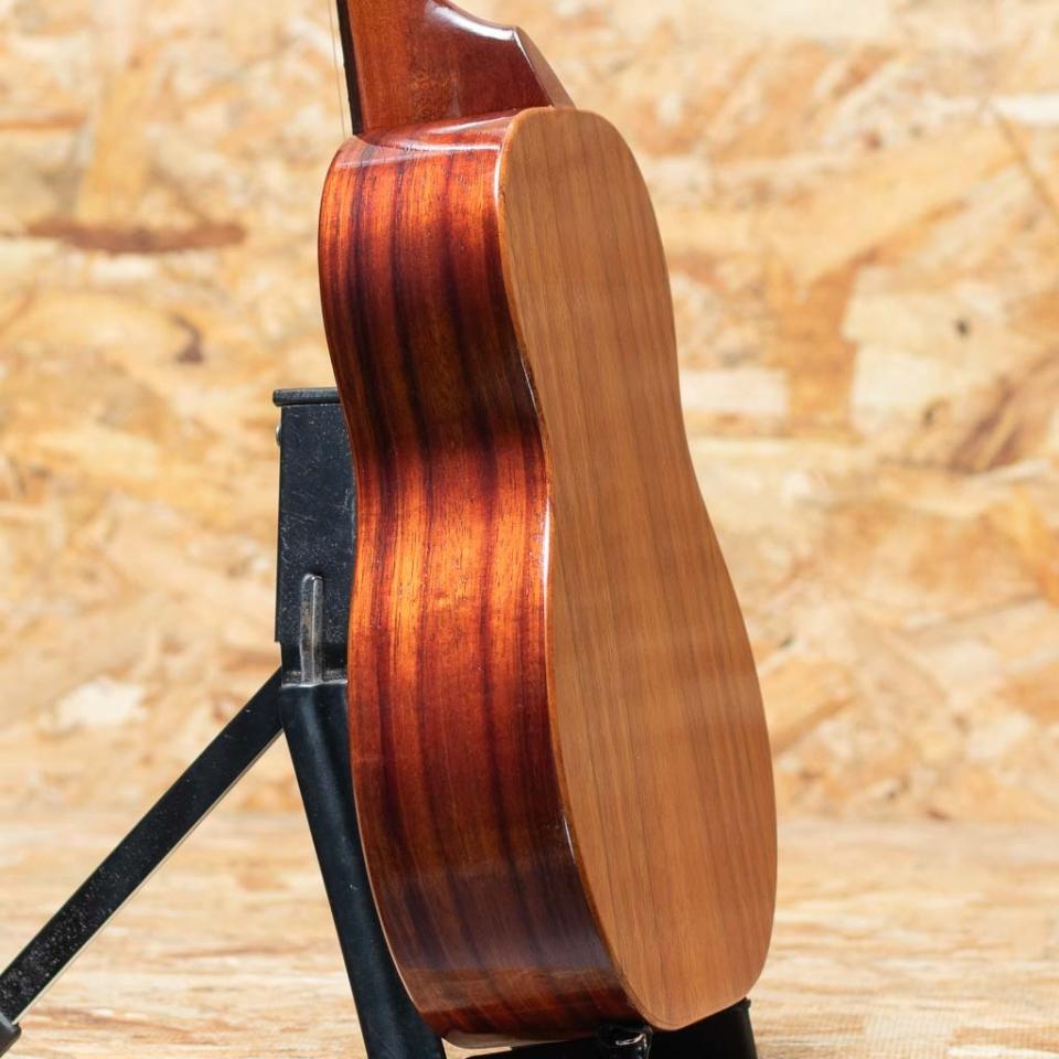 アルヴィン・オカミにより1995年に創設されたコアロハ・ウクレレ。現在は長男で社長のアランと、次男で副社長のポールを中心に、少数精鋭にて運営されております。今ではハワイを代表するウクレレメーカーの一つとなったコアロハ。モダンなルックスデザイン、優れた演奏性で、他のメーカーにはないハイファイでクリア、そして大きな音量が特徴。本器はテナースタンダードモデル”KTM-00”、2012年製USED品。マホガニーネック、エボニー指板&ブリッジ、ギヤペグ仕様。オールグロスにて仕上げられたボディは、艶やかで上品さをまといコア材の杢目を引き立てます。テナーサイズでしっかりとしたテンション、ボリュームを持ち、多彩なジャンルに対応可能。金属パーツのくすみや、ボディトップ・バックにごく薄いスクラッチ傷があるものの使用感は少なく、大切に扱われてきたことがうかがえる1本。ネックの状態含めプレイコンディションも大変良好。汎用のセミライトケースが付属いたします。