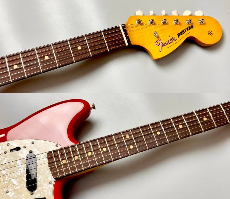 本機「Mid '60s Mustang」は、コンパクトなボディとショートスケールが生み出す唯一無二のプレイヤビリティに加え、60年代中期特有の甘くウッディなサウンドを忠実に再現した、本格的な復刻モデルです。