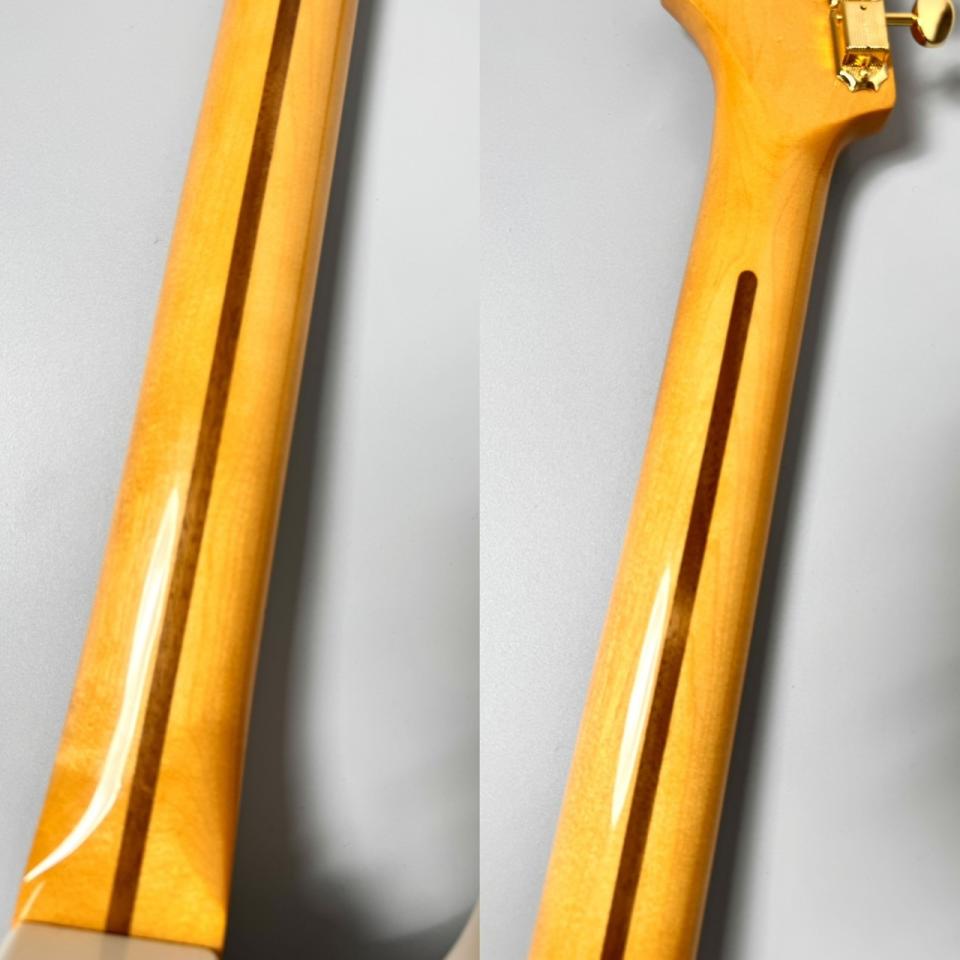 1-Piece Maple Neck: 1ピース・メイプルネックならではのダイレクトなレスポンスが魅力。50年代後期スタイルの「"D"シェイプ」は、手に吸い付くようなフィット感と、どこか懐かしい安心感のある弾き心地を提供します。