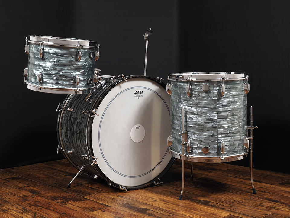 ジャズ全盛の時代の中、口径24”のバスドラムは大変珍しいセットです。