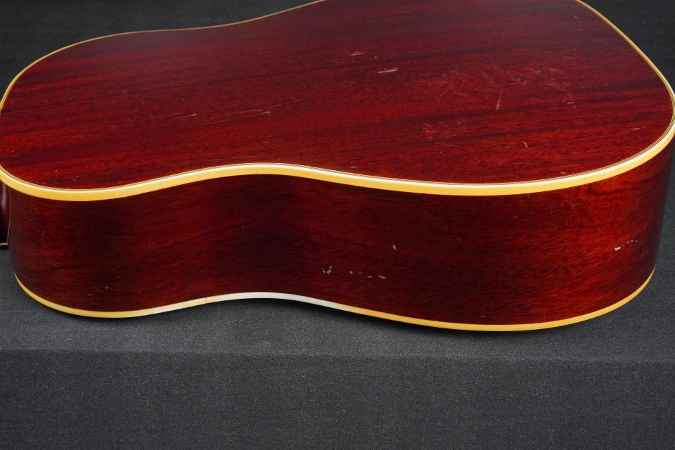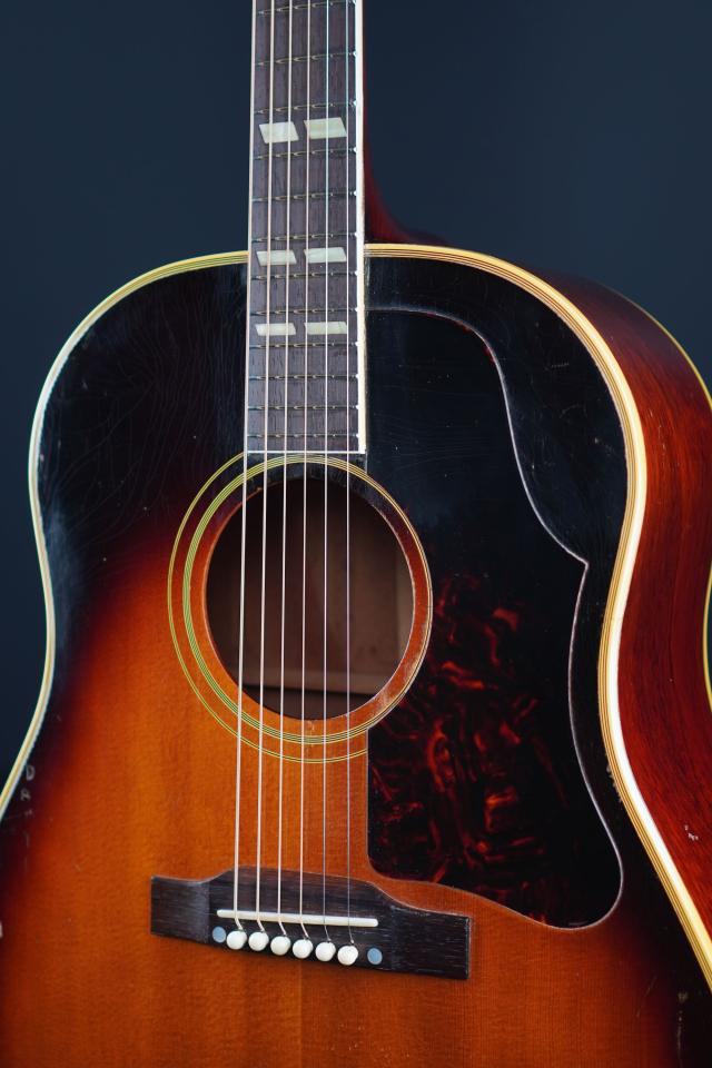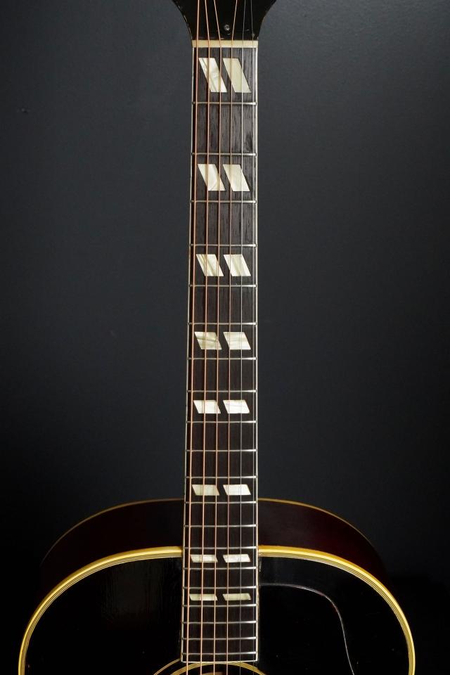 ギブソン・アコースティックでは絶大な人気を誇るJ-45と比べると、やや影が薄い印象も有りますが、基本的なウッドマテリアルは同様で、上位機種ではありますので細かな装飾系は多少ゴージャスになり、そこに50年代のサンバーストカラーが渋く合わさり、けっこうルックス抜群のギターとなっております!