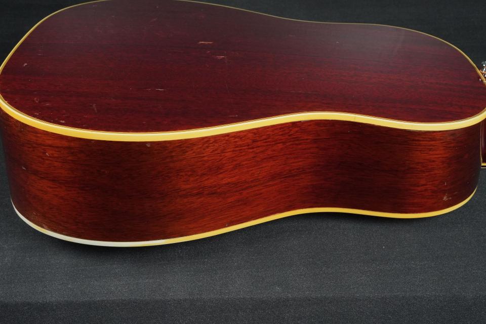 55年に仕様変更された後の、俗にラージピックガード期と呼ばれるサザンジャンボは、ヘッドのクラウンインレイや総フレット数が20フレット、バインディングの入った指板にはダブルパラレログラムのインレイ、サウンドホールには積層のパーフリングがツーリングでアップベリーのブリッジというルックスで、現代でもサザンジャンボと言えばこの仕様でリイシューされる事が多い、人気のスタイルです。