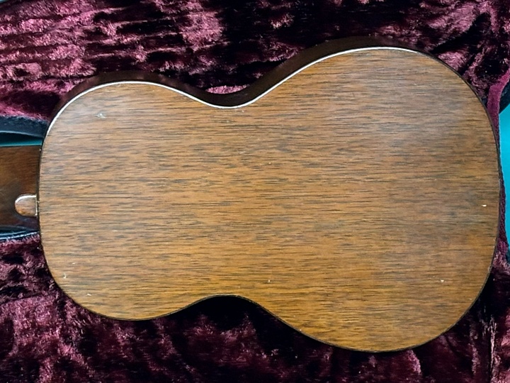 本機は1927年頃から1934年頃までのGrover 76系フリクションペグ、ヘッドトップにロゴマーク無し、ヘッドバックにマーチン刻印あり、バックのローズウッド・バインディング、オリジナルのバーフレット仕様の頃のモデルです。