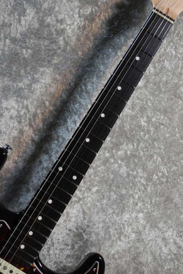 経年でのハイ起きの可能性を考慮されて作られており、フレットの質量を変えないよう、指板を絶妙に落とした加工が施されております。