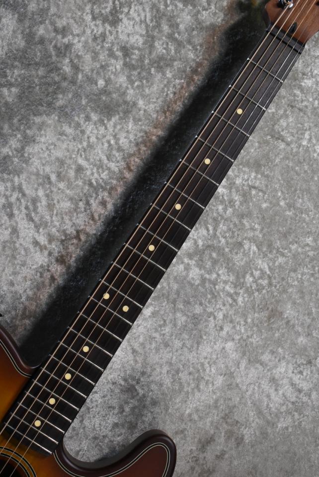 12インチラジアスのローズウッド指板には正確なフィンガリングをサポートする22本のフレットと視認性の高いアイボリードットインレイ、サイドドットが施されています。
