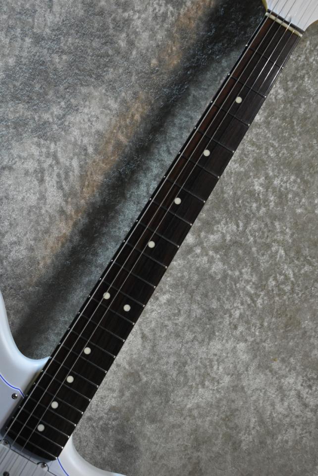 全体を統一感のあるサテンホワイトで仕上げ、ピックガードやヘッドロゴには、さりげなく覗く鮮やかなブルーが、ギターの個性と存在感を際立たせます!