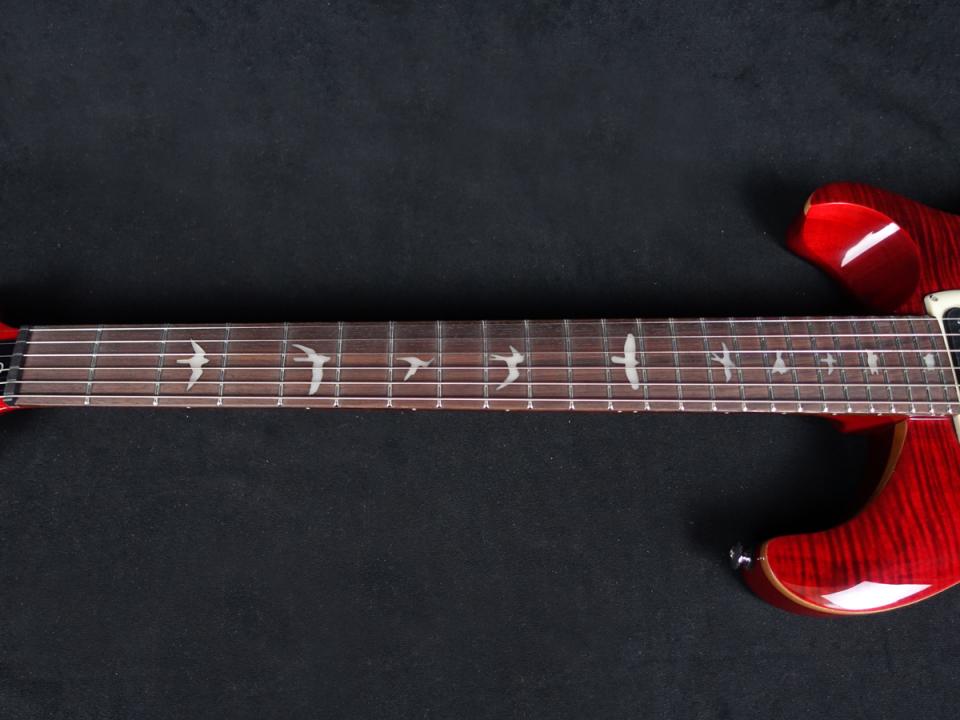 マホガニー・バック、メイプル・トップのボディ、Wide Thinカーブのメイプル・ネック、ローズウッド指板、バード・インレイを合わせ、PRSデザインのトレモロ・ブリッジを装備。