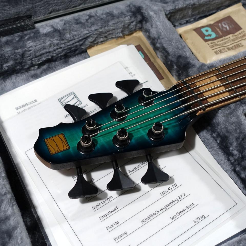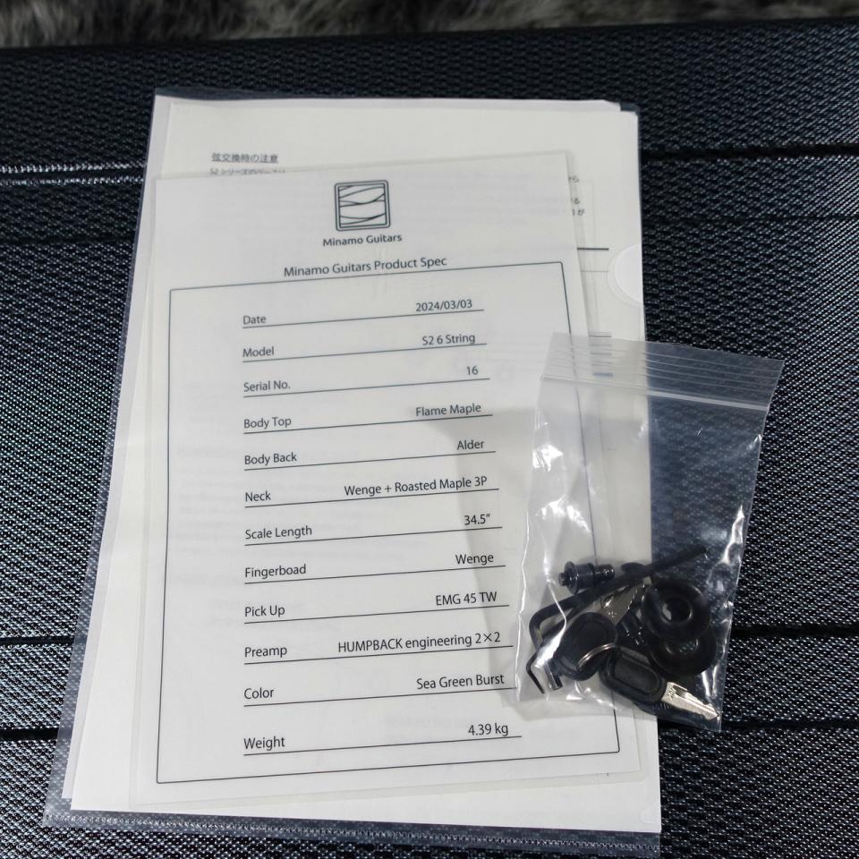 本機S2はMinamo Guitarsのフラグシップモデルとなり、34.5インチスケールを採用しつつも、重心をコントロールしたモダンなシェイプに選び抜かれたマテリアルを組み合わせることで、輪郭のある低音、クリアな高音域、素早いレスポンス、そして高い演奏性を実現しております。