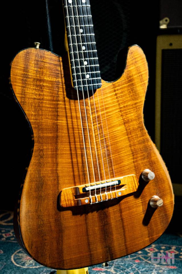 今回入荷したAC-10はエレガットです。テレキャスシェイプのソリッドボディでブリッジのピエゾピックアップから出力します。