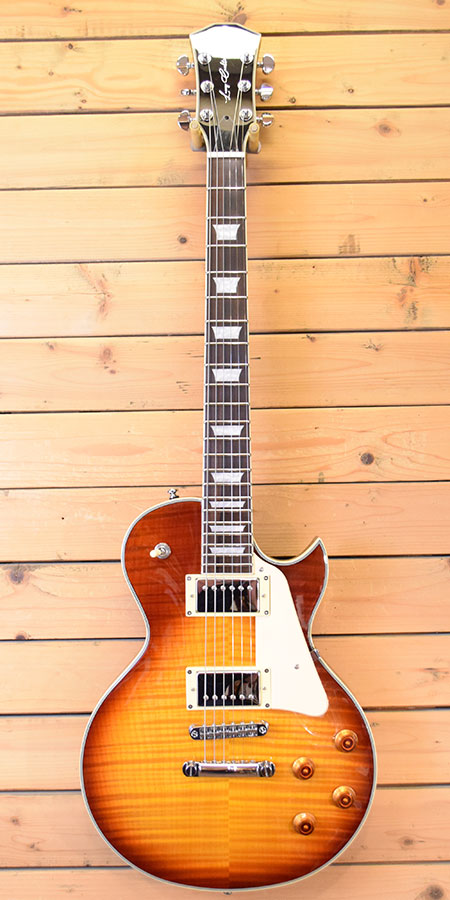 2024年製(定価121,000円)。ラリー・カールトン氏監修のLPスタイルモデル!マホガニー+メイプルTopボディーにマホガニー+ストライプの美しいエボニー指板(マッカサルエボニー)が使用されています。ハイフレットの演奏性に考慮されたヒールカットや手触りの良いネック裏のサテンフィニッシュ、ミディアムジャンボフレットによる運指の押さえやすさなどプレイヤー目線の工夫が細部に取り入れられています。王道LPサウンド+演奏性の良さが魅力のモデルです。