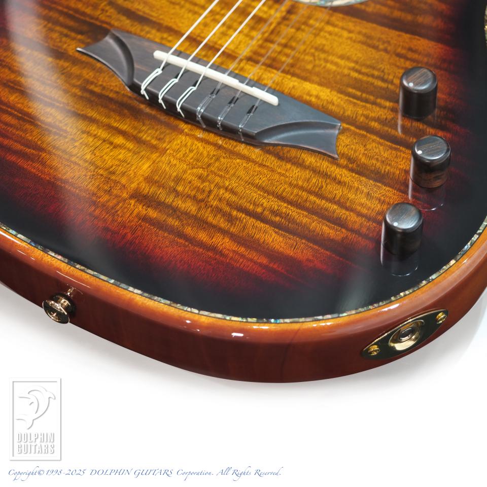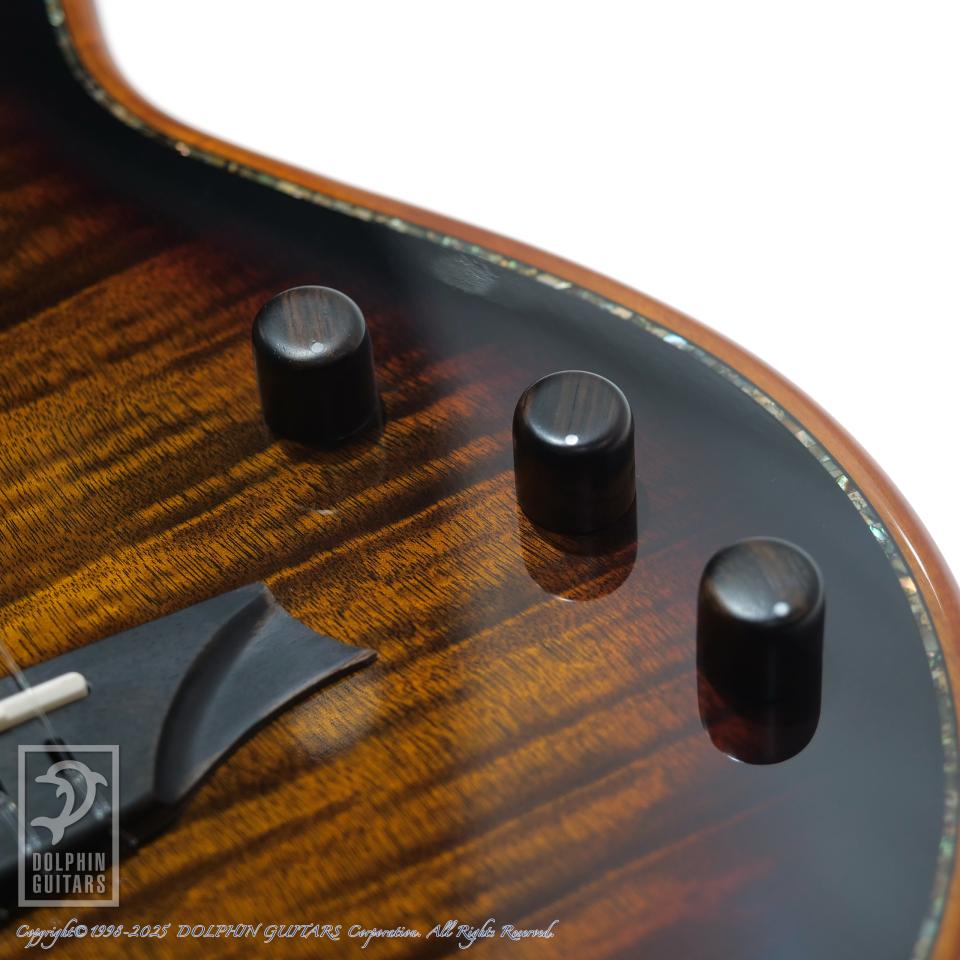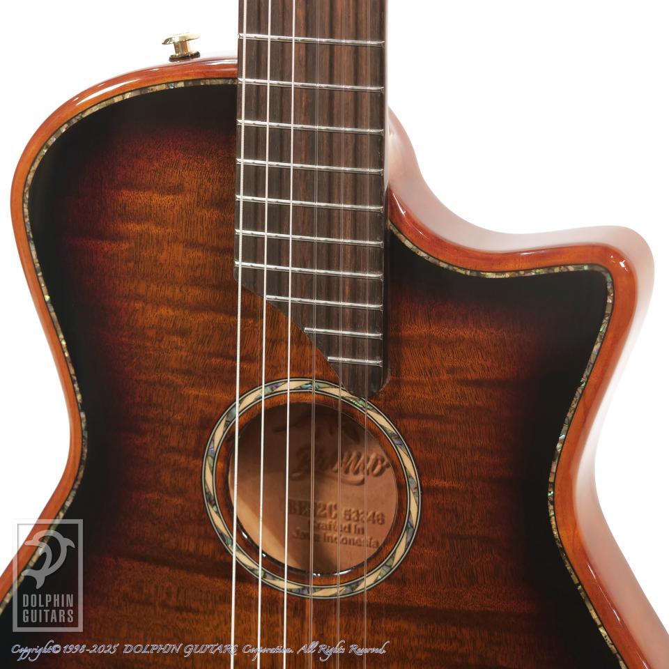 5Aフレイムオクメベニアとスプルーストップの組み合わせ、さらに軽量化を実現したマホガニーフルホロウボディが生み出す豊かな共鳴は、音楽的な表現を一層広げます。独自開発の「トーンフローブレーシング」は、バランスの取れた美しい音色を実現し、ピエゾピックアップとトランスデューサーを組み合わせたハイブリッドピックアップシステムによって、幅広い音作りが可能となります。どのような音楽ジャンルにも対応できる理想的なモデルです。