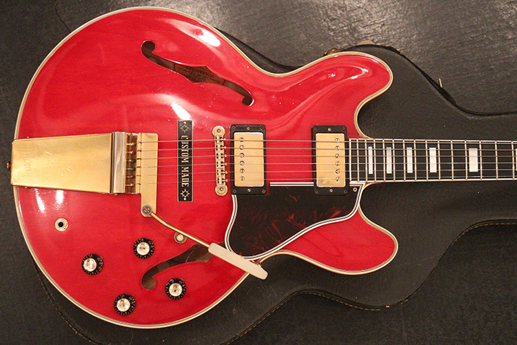 ギブソン社が新しいサウンド・メイクとして開発した、プリセット・トーンをコントロールする”ヴァリトーン・コントロールに、専用アンプも同時に開発した、ステレオでのアウトプットを装備し、最上位機種の相応しいボディのマルチ・バインディング、エボニー材の指板には本物のマザー・オブ・パールを使用したブロック・ポジション・マーカーと、大型のヘッド・ストックにもMOP製のダイヤモンド・インレイが施された、高級フルアコと同様な仕様を持っています