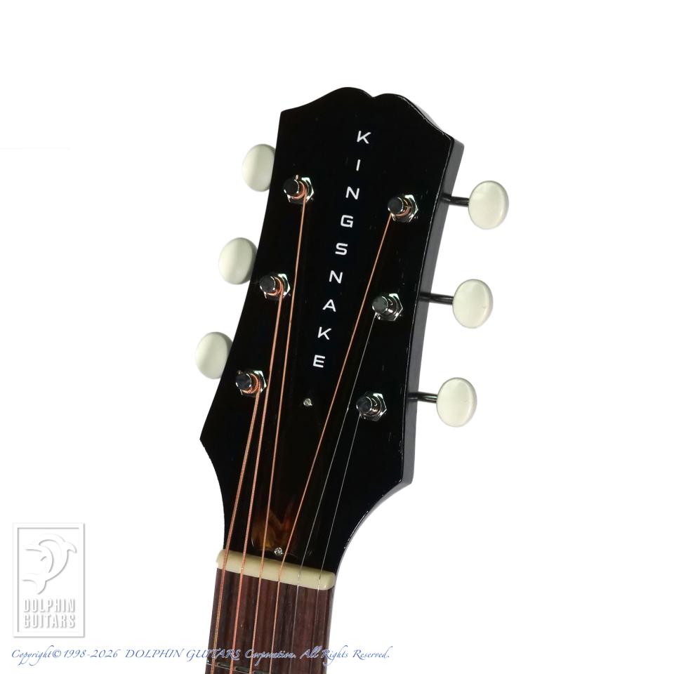 かつてのホワイト・カントリー・プレイヤー達はギター、フィドル、マンドリンの中にガラガラヘビのシッポを入れていた。「いい音がするんだよ」と。そして、MOJOがあると言う意味だそうだ(ブードゥー教において金運やギャンブル運、女性運を向上させるための意味)。話しを日本に向ければ、ヘビは、弁才天の使いとして富をもたらすものとして有名であり、縁起が良い動物として知られる。古くから神様の使いとも言われており、運気アップアイテムとしては欠かせないもの。それを総合し、King Snake(キングスネーク)と言うブランドが生まれました。