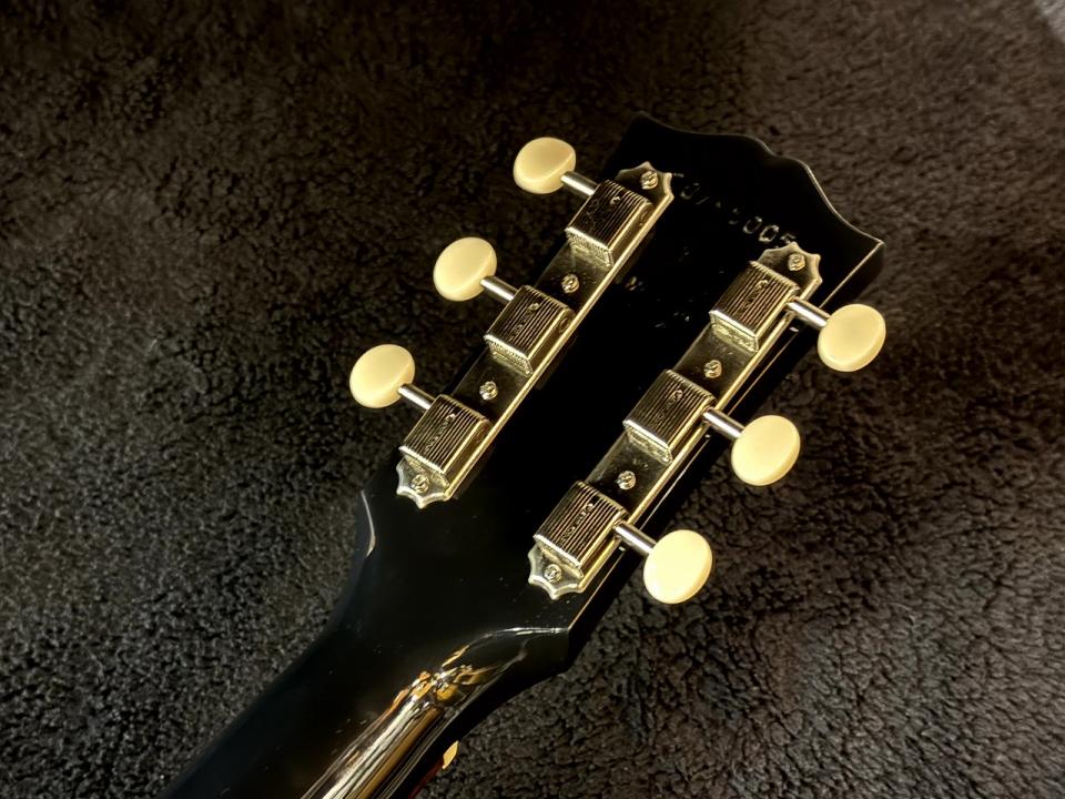 当モデルは、50年代のスペックを基に制作しており、56年より採用され始めた鼈甲柄のラージピックガードにサウンドホールはシングルリング、ホワイトボタンの3連ペグ等50年代の仕様となっております。