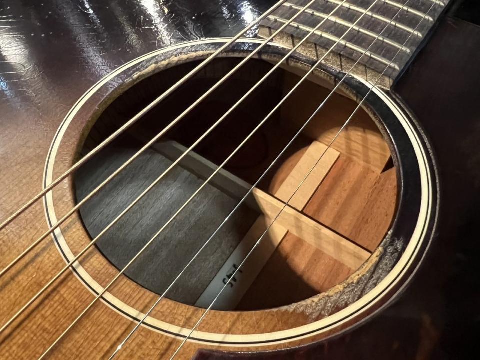 Xブレースとトップの接着にはニカワが使用され、ボディトップには多層バインディング、ボディバックにはシングルバインディングが施されています。