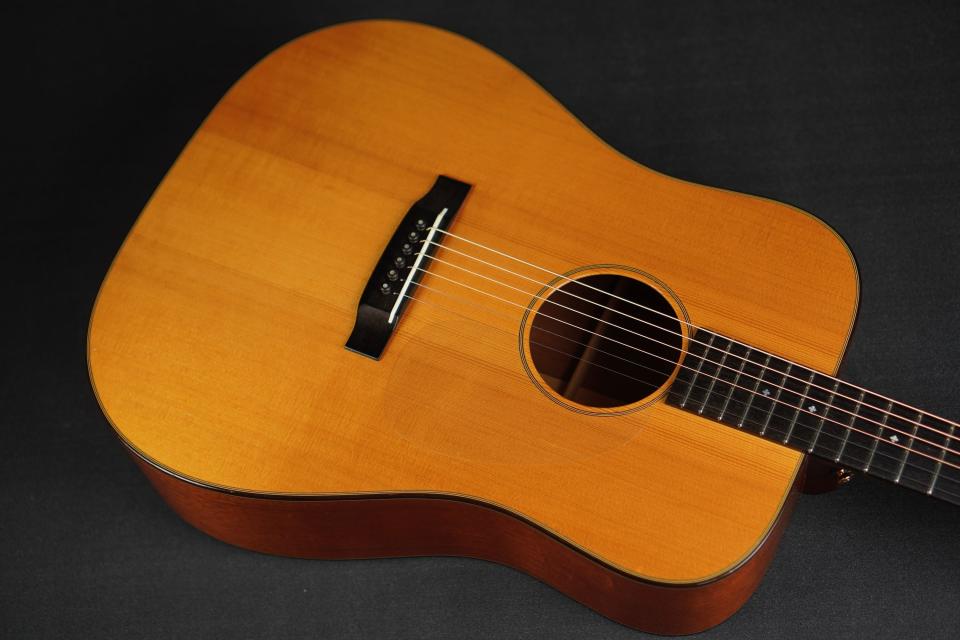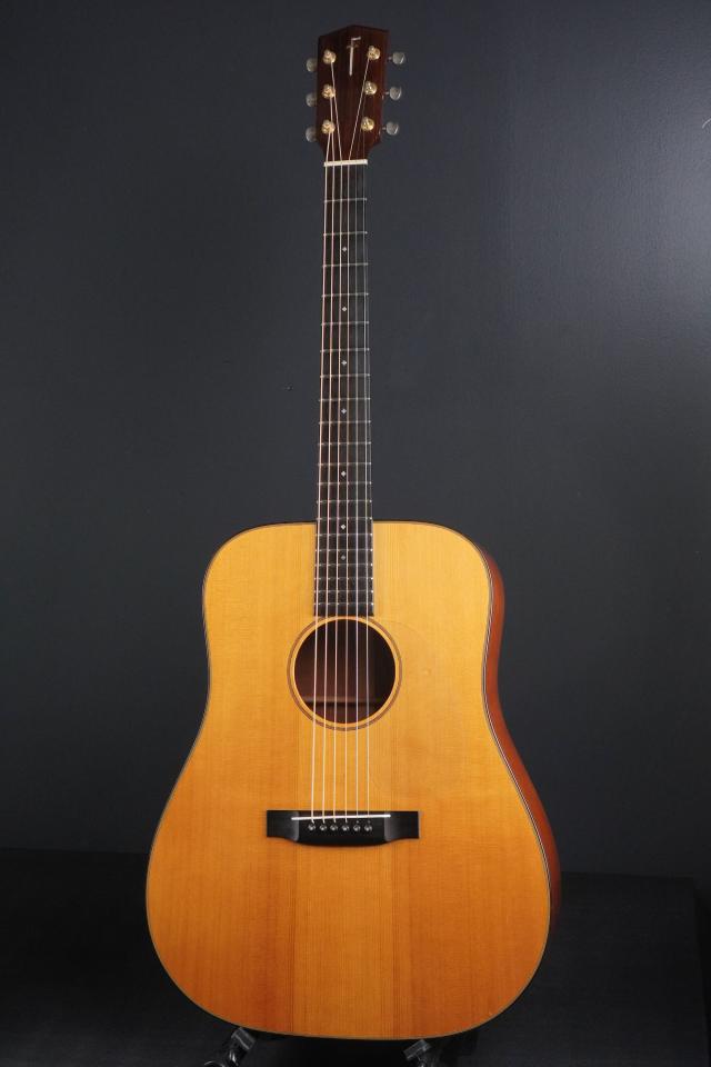 正確な製造年は不明ですが、80年代頃のフィールズ初期の頃の製作で、ノンカッタウェイのドレッドノートでマホガニーという、フィールズとしては比較的トラディショナルなスタイルの中古品が入荷致しました。