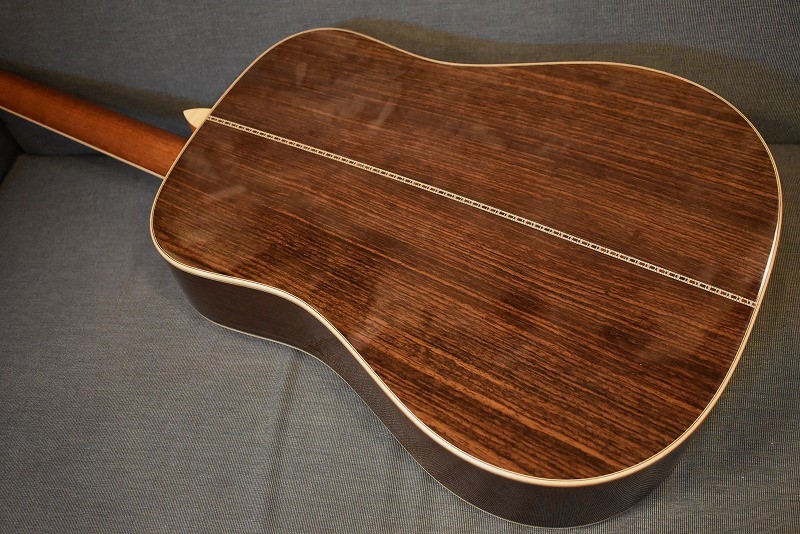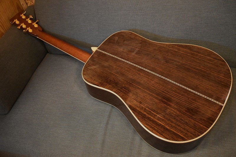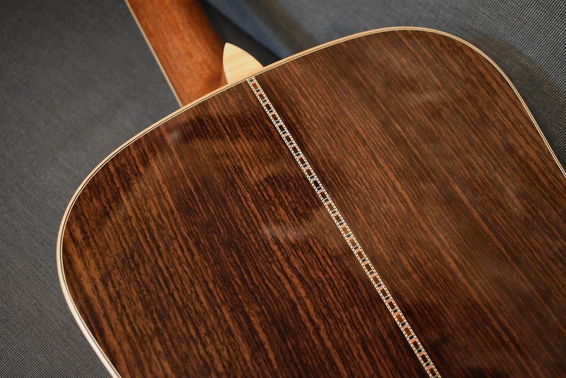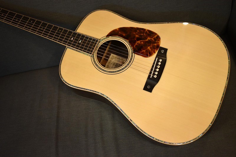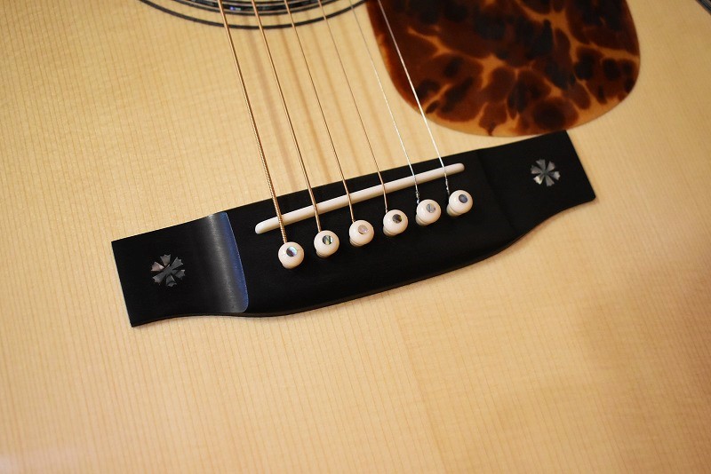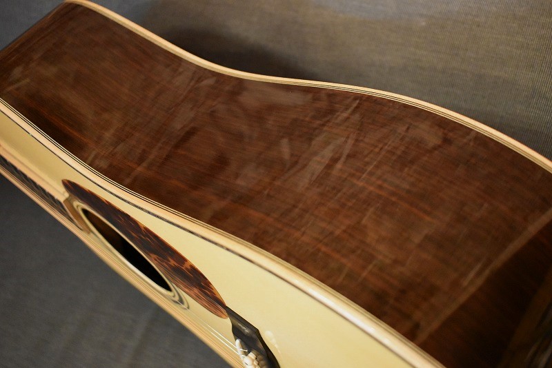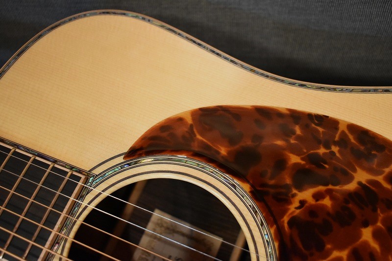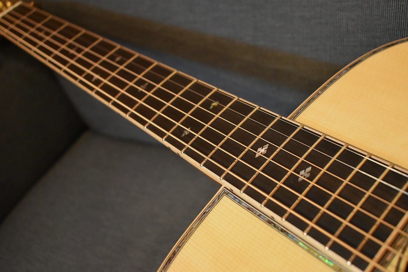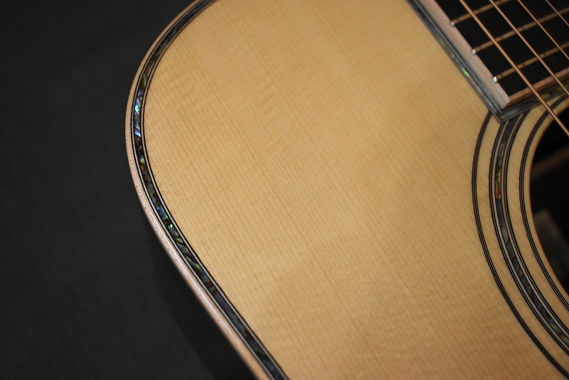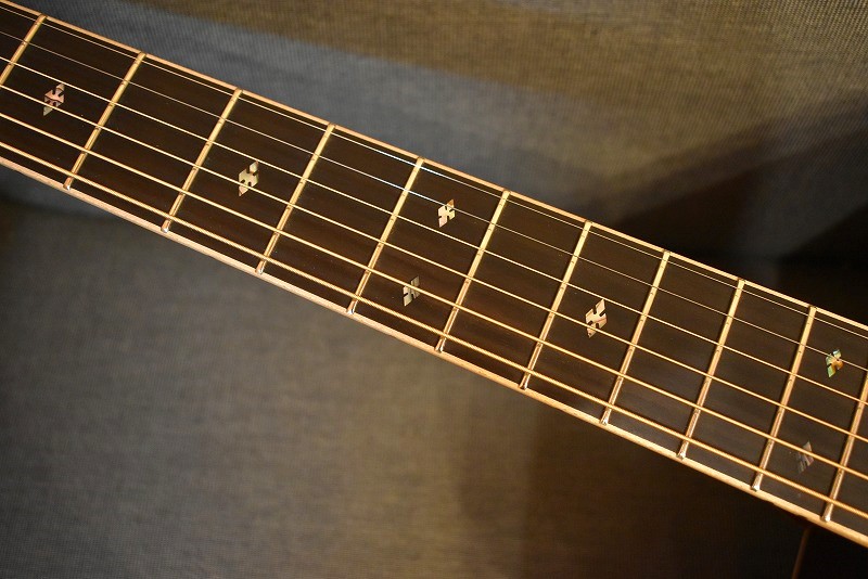 きらびやかなメキシコ貝インレイはもちろん、厳選された最高級のインディアンローズウッドに、#600サンドペーパーで磨き上げたノンスキャロップドブレイシング。そのボディからのサウンドは、エンペラーにも引けをとらない逸品です。