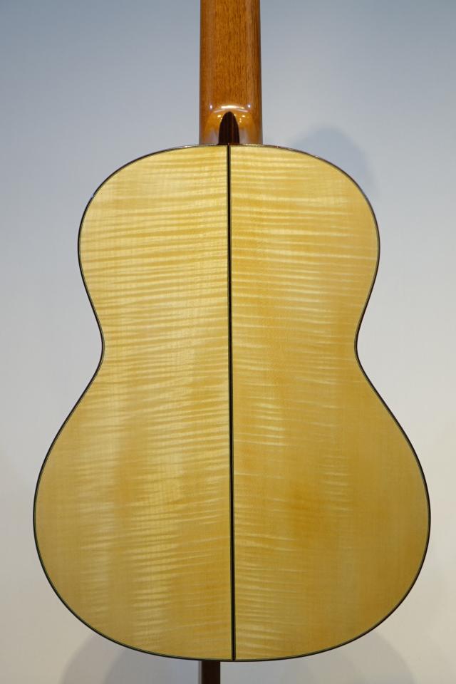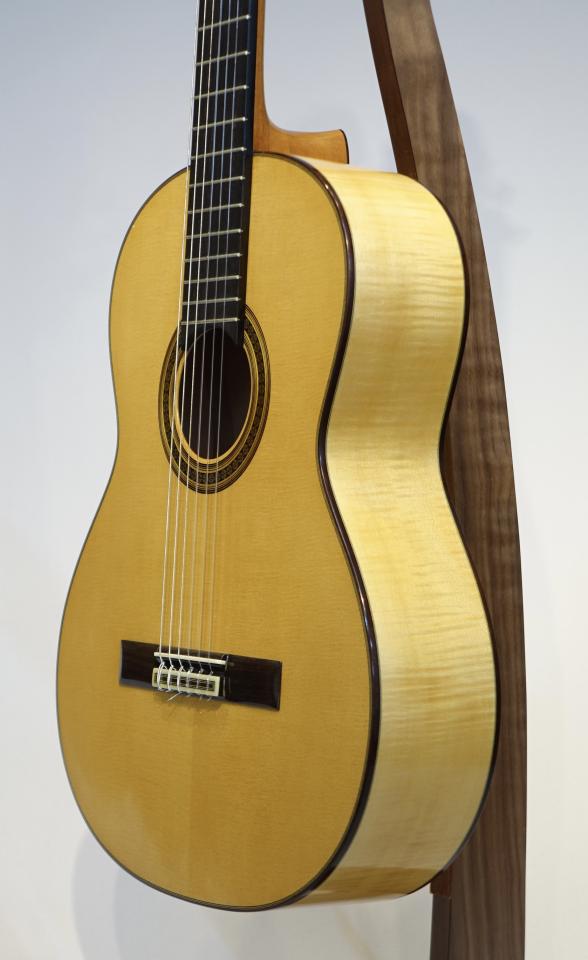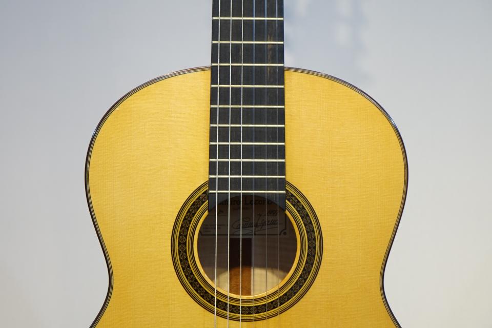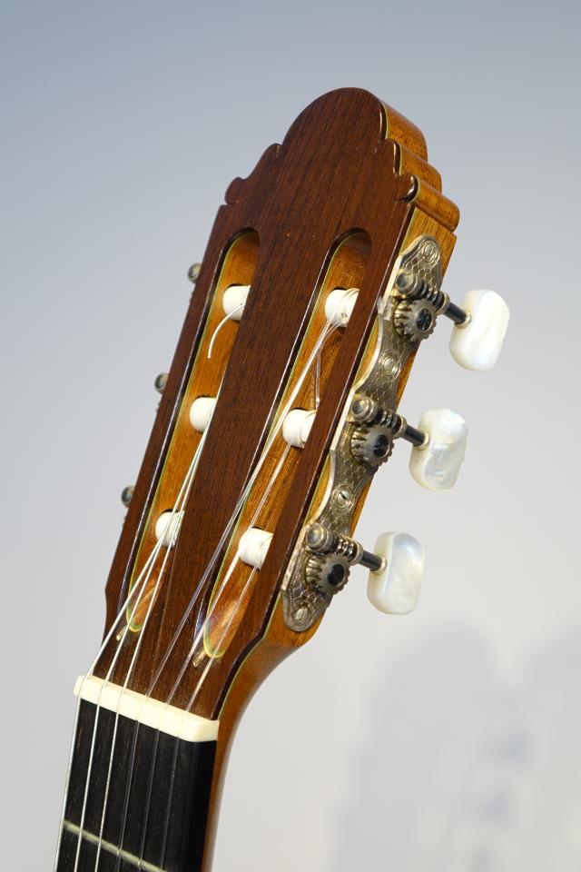 カシミロ・ロサーノが入荷しました。ホセ・ルイス・ゴンサレスに称賛され、日本でも広く知られるようになったギターです。前オーナーさんが、20年以上使用されていたそうですが、目立ったキズ、塗装にも問題なくとても綺麗です。横・裏に使用されているメイプル材も非常に美しいです。ダブルトップ構造で音量はありますが、メイプルのモダンギターに近い、ナチュラルな響きで、すっきりと鳴ってくれます。糸巻はライシェルです。