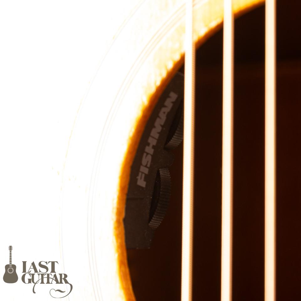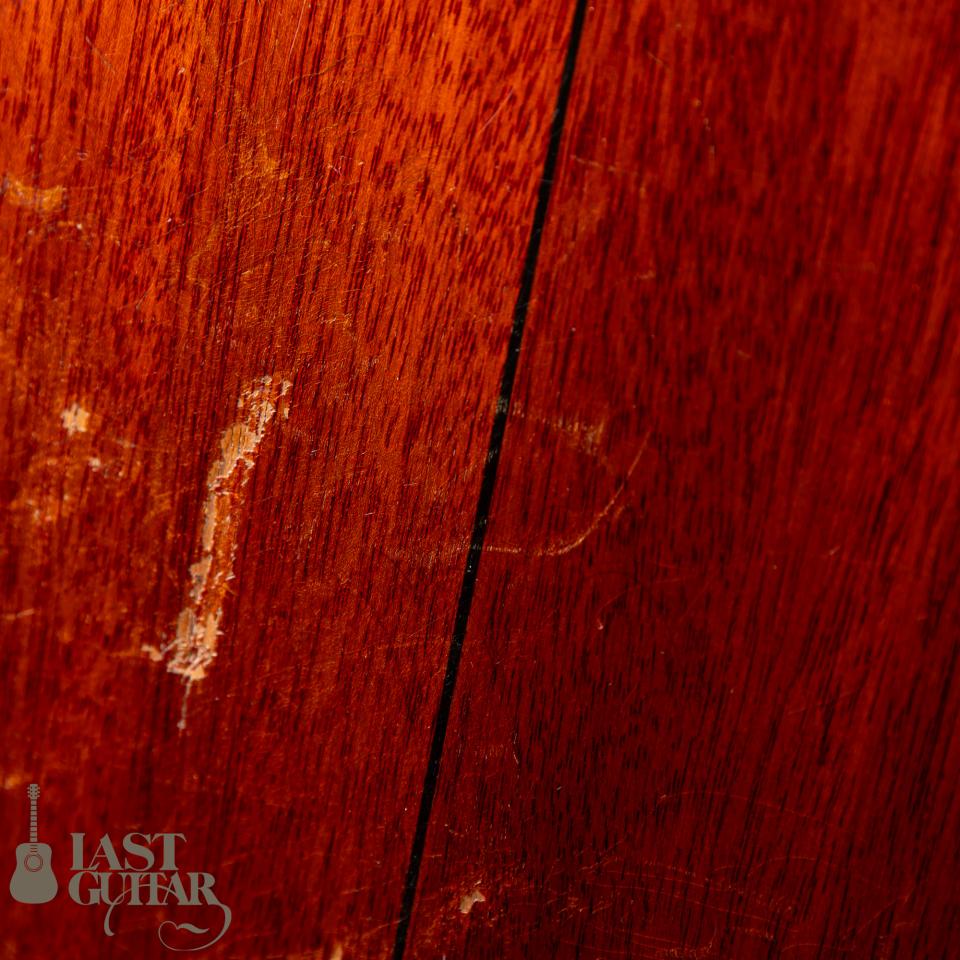 現在、フィッシュマンのアンダーサドルアクティブピックアップが搭載されておりますのでライブ等でもすぐにご使用いただけます。ピックガード内側のクラック補修、バックに深めのキズ等がございますが、年式を考えますと良い状態をキープしていると思います。ペグは、クルーソンタイプに交換されており、動作は問題ありません。ネックコンディション、フレット等も、演奏に問題ない状態です。ストラップピンの取り付けがございます。