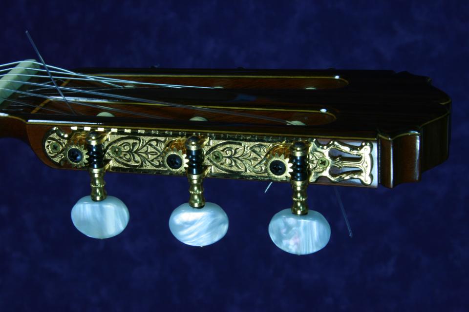 サイドバックがインディアンローズウッドのこの機種は、ハカランダ系のサイドバックのものに比べ、音は耳に優しく柔らかい音色になります。