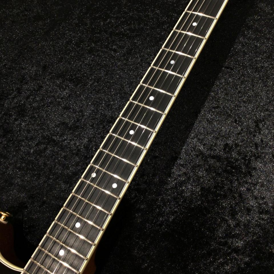 エレキ弦を張ったチェンバード構造でフルアコボディとなっており、ボディのアウトラインはKz One、ボディ厚はやや厚めの50mm、スケールは25インチの設計。出荷時はエレキ弦 .010~.046でセッティングされているので、エレキライクなベンディングやビブラートが可能です。