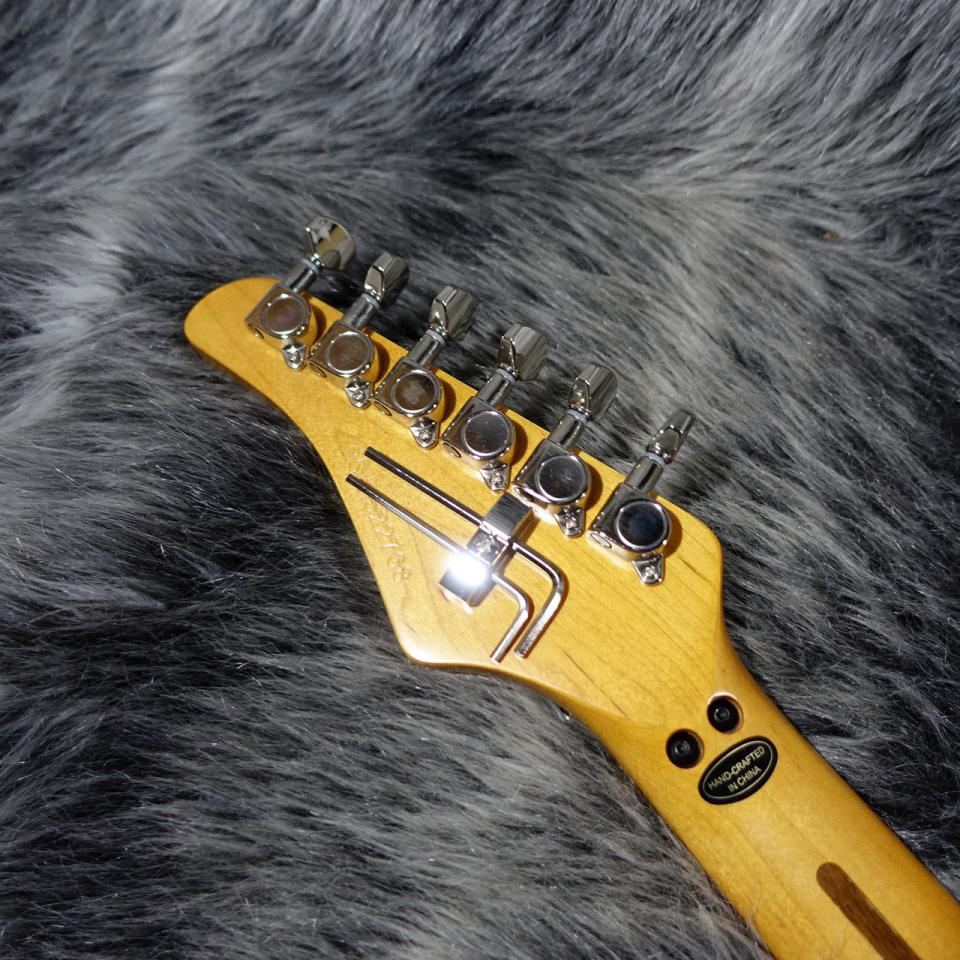 トラスロッドは指板エンド部にてスポークホイール式の調整機構を採用し、簡単かつ迅速な調整が可能。スケール長は25.5インチで、ドロップチューニングにも最適です。さらに、新たに開発されたKramer KeyLockシステムも搭載。プロダクト・ディベロップメント・エンジニアのリチャード・エイカーズにより開発されたこのシステムは、ネックポケット内の動きを防ぎ、ネックの安定性を飛躍的に向上させます。Kramerの5ボルト・ネックジョイントと相まって、弦振動の伝達性、サステイン、イントネーションのすべてが強化されています。
