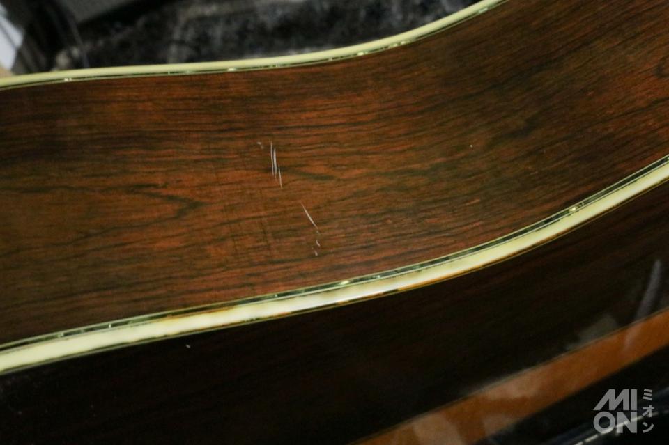 縦の貝ロゴの両脇に、「TF」が記されています。当時のラインナップの最上級モデルで、マーティンの「D-45」を踏襲していることがわかります。
