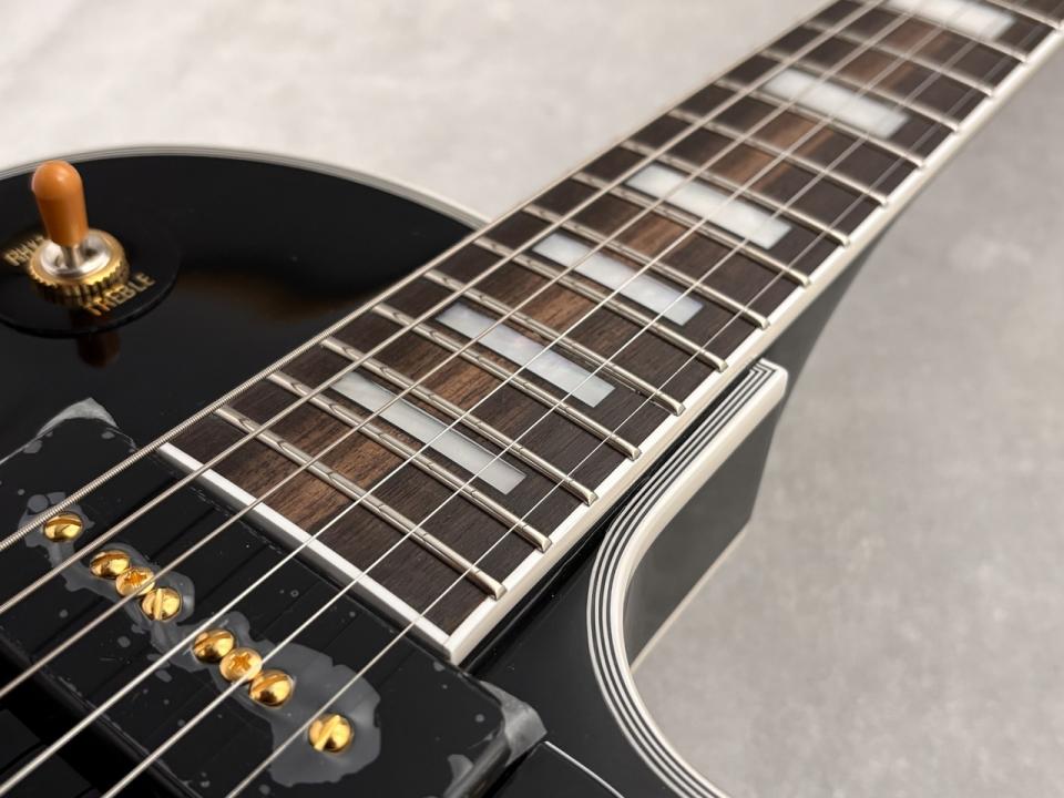前回のゴールドトップと異なり、カスタム基準という事で指板をエボニーへ変更。暖かくも歯切れ良い定番のサウンドに加え、艶やかで厚みのある低音域がプラスされ、さらにゴージャスな仕上がりとなっております。