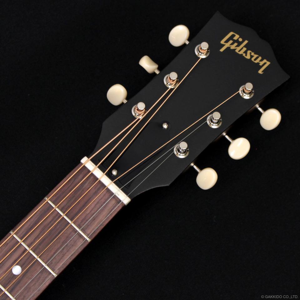 LG-2 All-Mahogany Fadedは、バックとサイド、そしてサウンドボードに至るまで、ソリッド・マホガニーを使用して構築されています。マホガニー・トップは伝統的なスキャロップドXブレーシングで補強され、ボディにはトップとバックにシンプルなブラックのバインディングが施されています。マホガニー材でラウンド・プロファイルを持つネックはコンパウンド・ダヴテイル・ジョイントによりボディにセットされています。ネックにはバインディングのないローズウッド指板が貼られています。20フレット仕様で製作され、上品でシンプルなマザー・オブ・パールのドット・インレイが施されています。