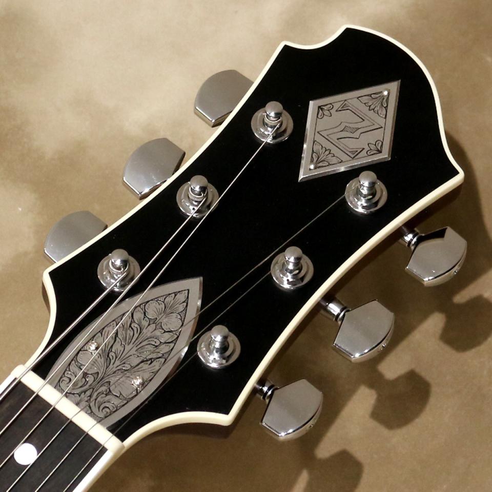 ピックアップ・リングは、最新の弦の角度にあわせたアングル付きではなく、あえて従来のフラット・タイプを合わせることでクラシックな印象を持たせている。