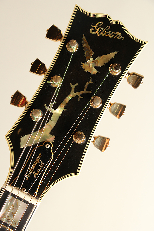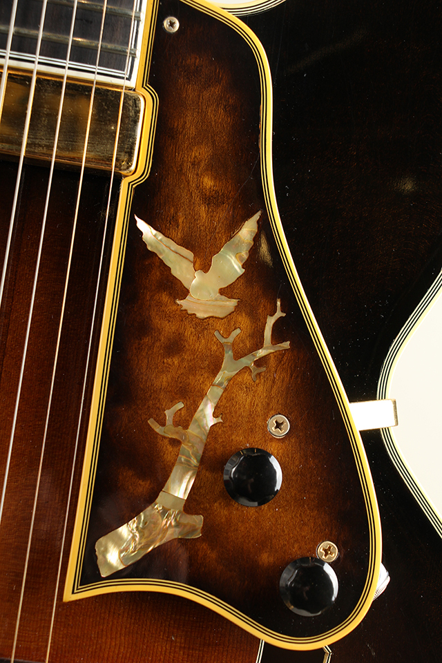 当時のクラフトマン"Wilbur Fuller"による設計は、度重なる熟練職人とのディスカッションとサウンドチェックを繰り返し、その成果は明らかに同年代の他もモデルとは一線を画す仕上がりとなっております。ボリュームのあるアーチ整形、絶妙な厚みに削りだされたトップ厚、それらが生み出すボディバランス、ヘッドトップやピックガード等に施された豪華なインレイワーク等、随所に当時の職人たちの拘りが感じられます。