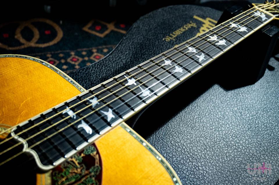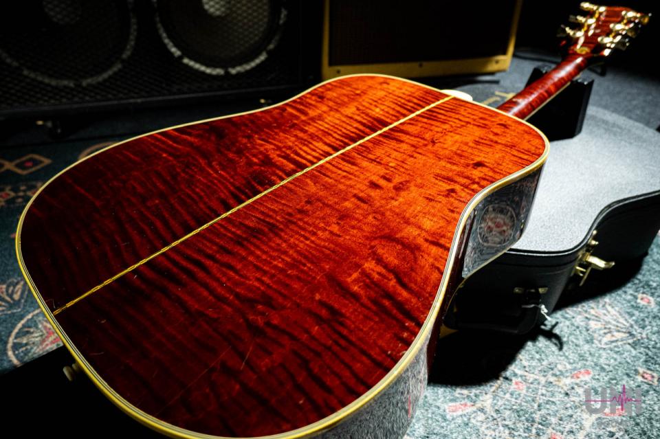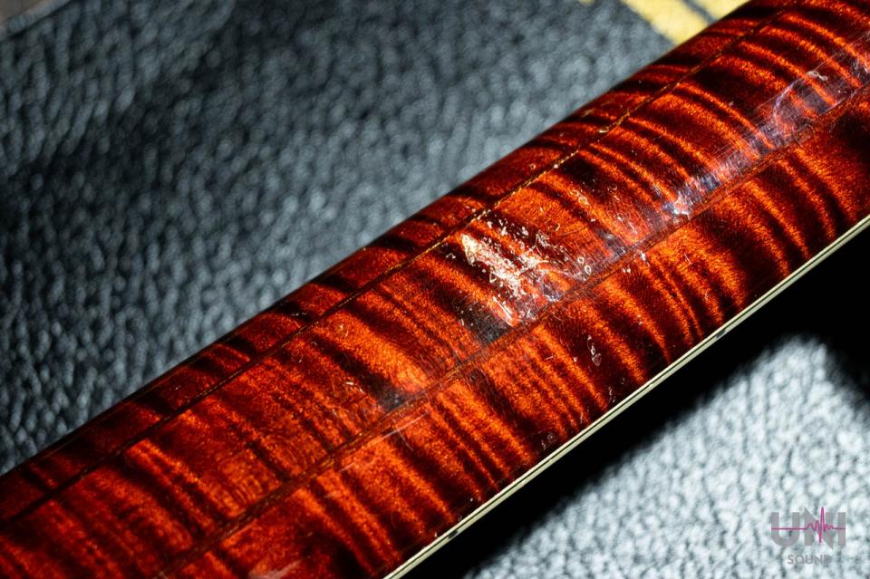 ロングスケールの持つハリのある透き通った音程感にメイプルバックとサイドならではの立ち上がりの速さ、豊かな胴鳴りと、少し甘いニュアンス、奥行きのあるサウンドが味わい深い名器です。