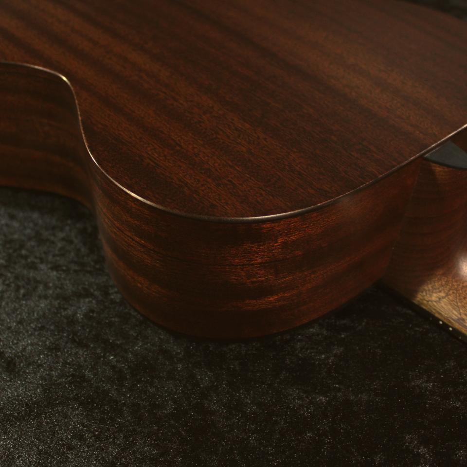単板スプルース トップ、単板サペリ バック&サイドを採用したこのギターは、パンチの効いた中音域、歯切れの良い高音域、そして6弦すべてにわたるバランスの取れたトーンを実現しています。サペリはマホガニーとよく比較され、同様の温かみと遠達性を備えていますが、高音域のレスポンスがやや明るく、外観はより明るいブラウンです。スプルース トップは音の遠達性とアーティキュレーションを高め、スタジオでもステージでも同等の演奏性を実現します。スキャロップドXブレーシングは、レスポンスとダイナミックレンジをさらに向上させています。