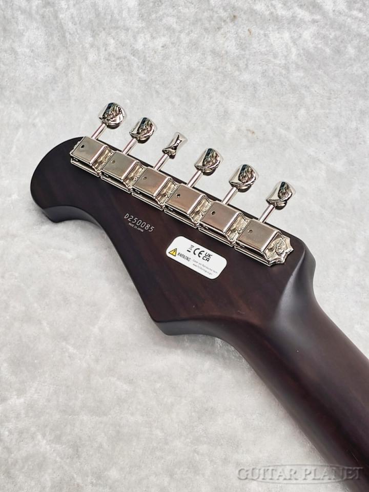 ネックには太過ぎず細過ぎずの適度なグリップを持たせており、またコンパウンドラジアスを採用しストレスの無い演奏性は好評を得ており、蓄光ルミンレイのサイドポジションマークやロック式のペグ等、実戦的な仕様も持ち合わせております。