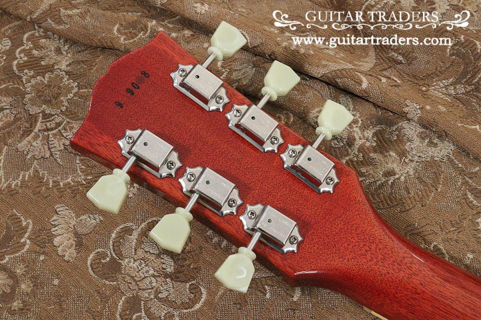 今回入庫は、1959年の新品時を思わせる、チェリー・サンバースト・フィニッシュを再現した機体のUSEDで、リアルなフィギュアード・メイプル・トップが魅力的な機体です