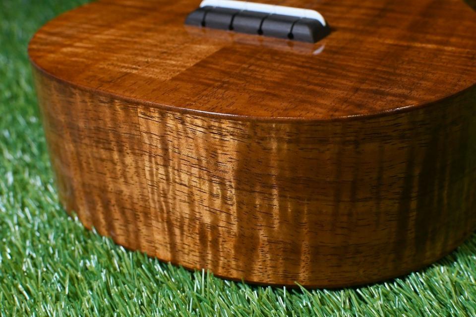 細めのネックでも音痩せせずしっかりと箱鳴りしてくれるこのウクレレは、弾けば弾くほど味が出る、その育てる過程も存分にお楽しみいただけると思います。