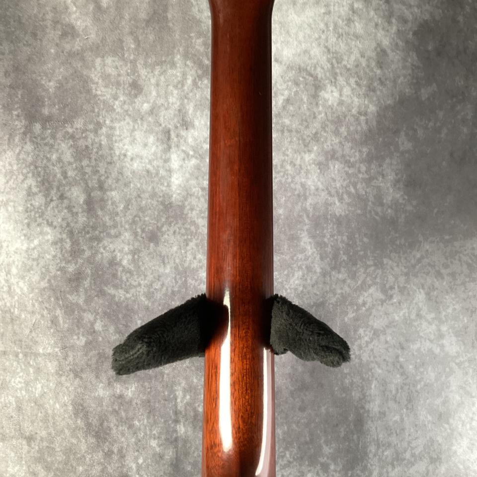 トップには希少材レッドウッドを使用し、サイド&バックおよびネックはマホガニー、指板・ブリッジにはエボニーを採用しています。
