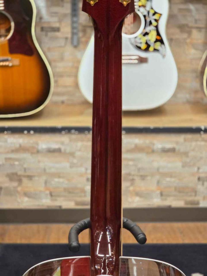 Guildのラインナップの中でもD-55は上位機種に位置付けられており、その完成度の高さは他モデルと弾き比べた際に感じられる場面もあります。たとえば同系統のドレッドノートモデルと比較すると、音の奥行きや倍音の広がりにおいて、より立体的に感じられることがあり、“鳴り”だけでなく“響きの広がり”まで意識されたようなキャラクターが特徴的です。下位モデルが扱いやすさや素直さを感じさせる傾向があるのに対し、D-55はやや複雑で奥行きのある音像を持ち、演奏者の個性をより反映しやすい側面も見受けられます。こうした違いは、弾き込みや演奏スタイルによって印象が変わる点も興味深いところです。