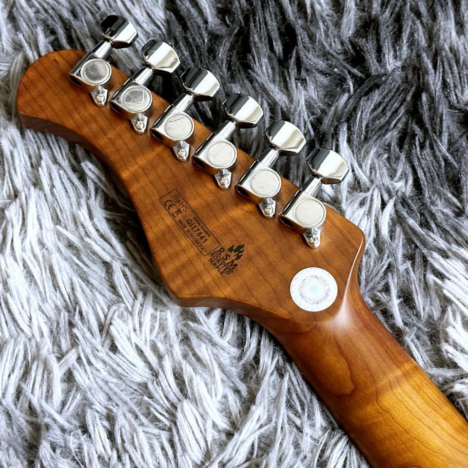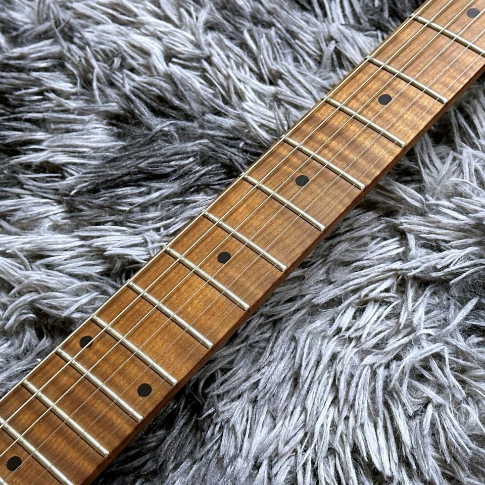 ネックにローステッドメイプルを採用することで、ハイエンドモデルの様な雰囲気を醸し出しています。ネックとしての剛性が高いためトラブルが少なく、また音の立ち上がりが良いカラッとしたビンテージギターのようなトーンを生み出します。(※メイプルの杢目には個体差があります)
