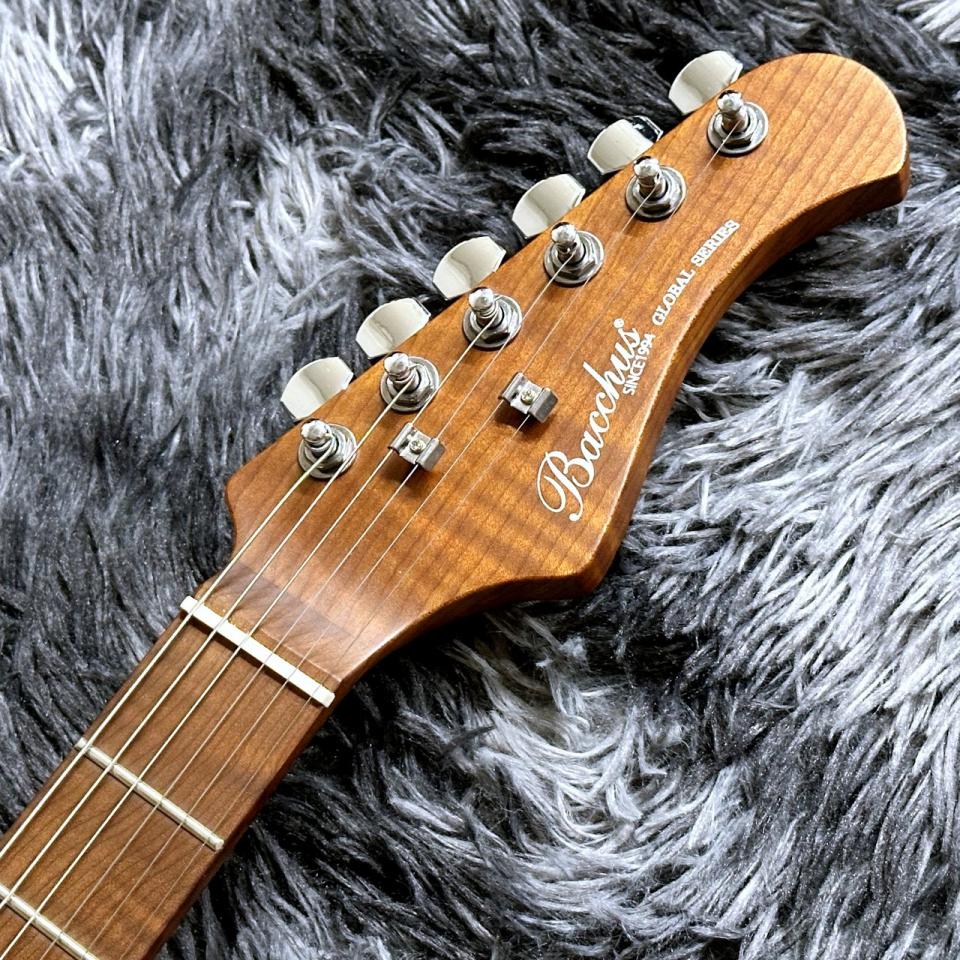 ROASTED MAPLE(RSM)シリーズローステッドメイプルとはメイプルを高温で加熱処理して材の中の水分や油分を揮発させることにより剛性を高めた材。ネックに使用されるとその効果は安定性だけでなくサウンドにも及び、豊かな生鳴りと経年変化したビンテージのようなこなれたトーンを生み出します。高級機種で使われることの多いこの本格派仕様をリーズナブルな価格帯に落とし込んだBacchusの新しい製品ラインナップです。