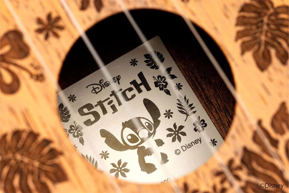 ヘッド部分にもスティッチの姿があり、シリアルナンバー入りのオリジナルラベルがサウンドホールの中につきます。