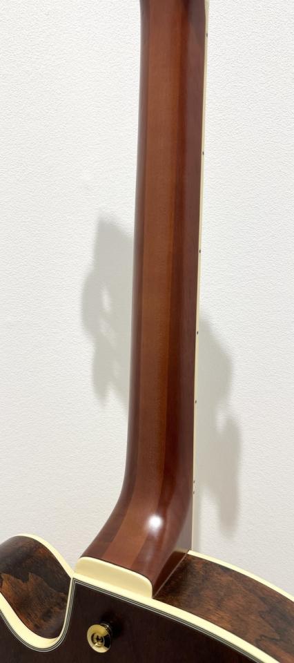 ネックは、パット本人の好みを反映したPM専用のナロー・ネックシェイプ。エボニー指板の滑らかな質感と相まって、複雑なコードワークや高速なフレーズもストレスなく奏でることが可能です。
