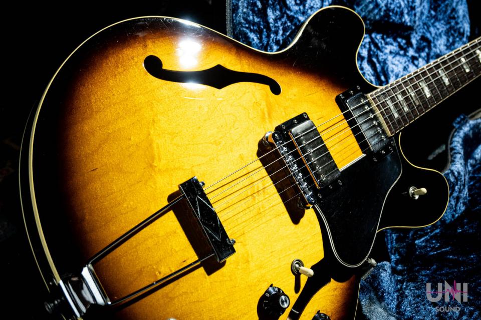 フルアコのようなウォームなサウンドとレスポールのようなサスティーンとハウリングへの耐性を持つギターがまさに335で、サウンドの幅が非常に広いギターです。