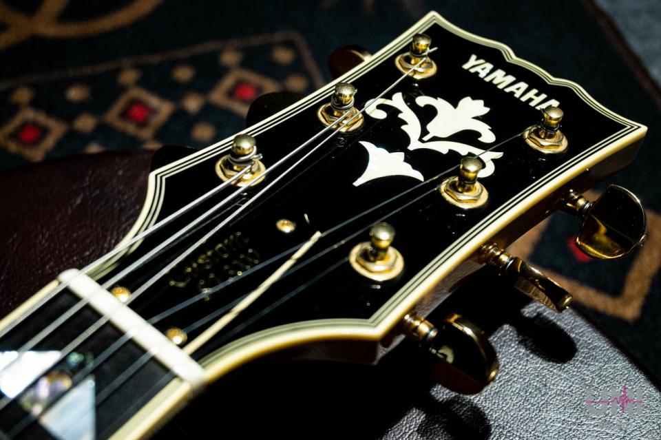メイプルトップ、マホガニーバックというレスポールと同様のボディ材構成ですが、ギブソンともフェンダーとも違うヤマハ独自の物を作ろうという、当時の気合の入りようが見て取れる非常に高い完成度です。