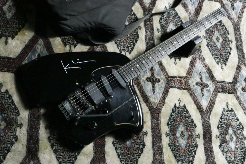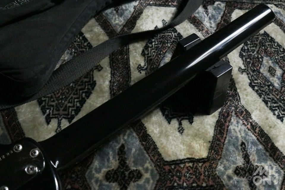 オリジナルのソフトケースとアームが付属します。このギターをMVで使っている人がいたら間違いなく注目を浴びれますね。
