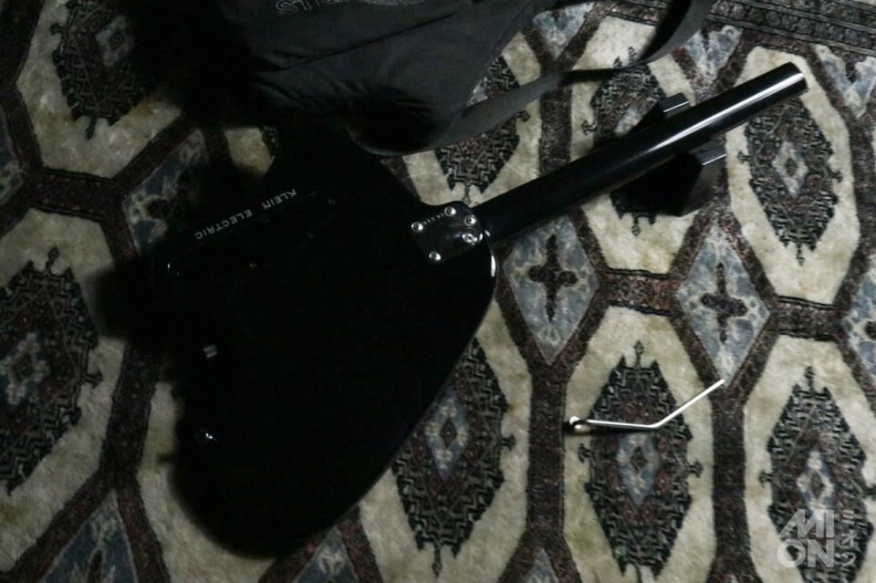 見た目のインパクトが強いですが、座って弾いた時のバランスはもちろん、チューニングの安定性を含め、使いやすさも抜群です。最近見かけることの多いストランドバーグのギターと名前も似ていて、ヘッドレスなど共通した部分が多いですが、サウンド感は全く異なります。ヘッドレスというジャンルを確立した、本家のこのスタインバーガーは、トラベルエレキギター界に置いて、頂点に君臨しているのではないでしょうか。このクラインに関しては、持ち運びという点でものすごく不便そうに見えますが、やっぱり小さいです。でも少しだけ横にかさばります。そこがまた可愛いポイント。